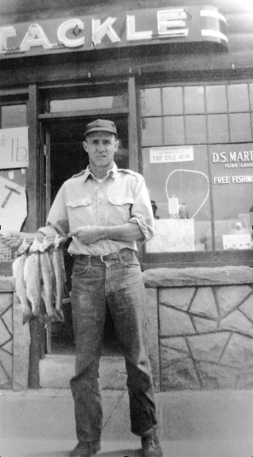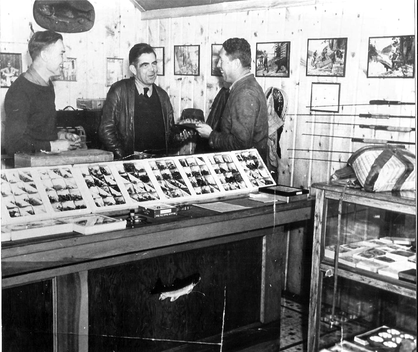 On the top right is the first Bud Lilly Trout Shop in West Yellowstone, Montana. Note the window advertising that features D. S. Martinez leaders and flies. At the time, Bud Lilly was the exclusive distributor of Don Martinez flies.