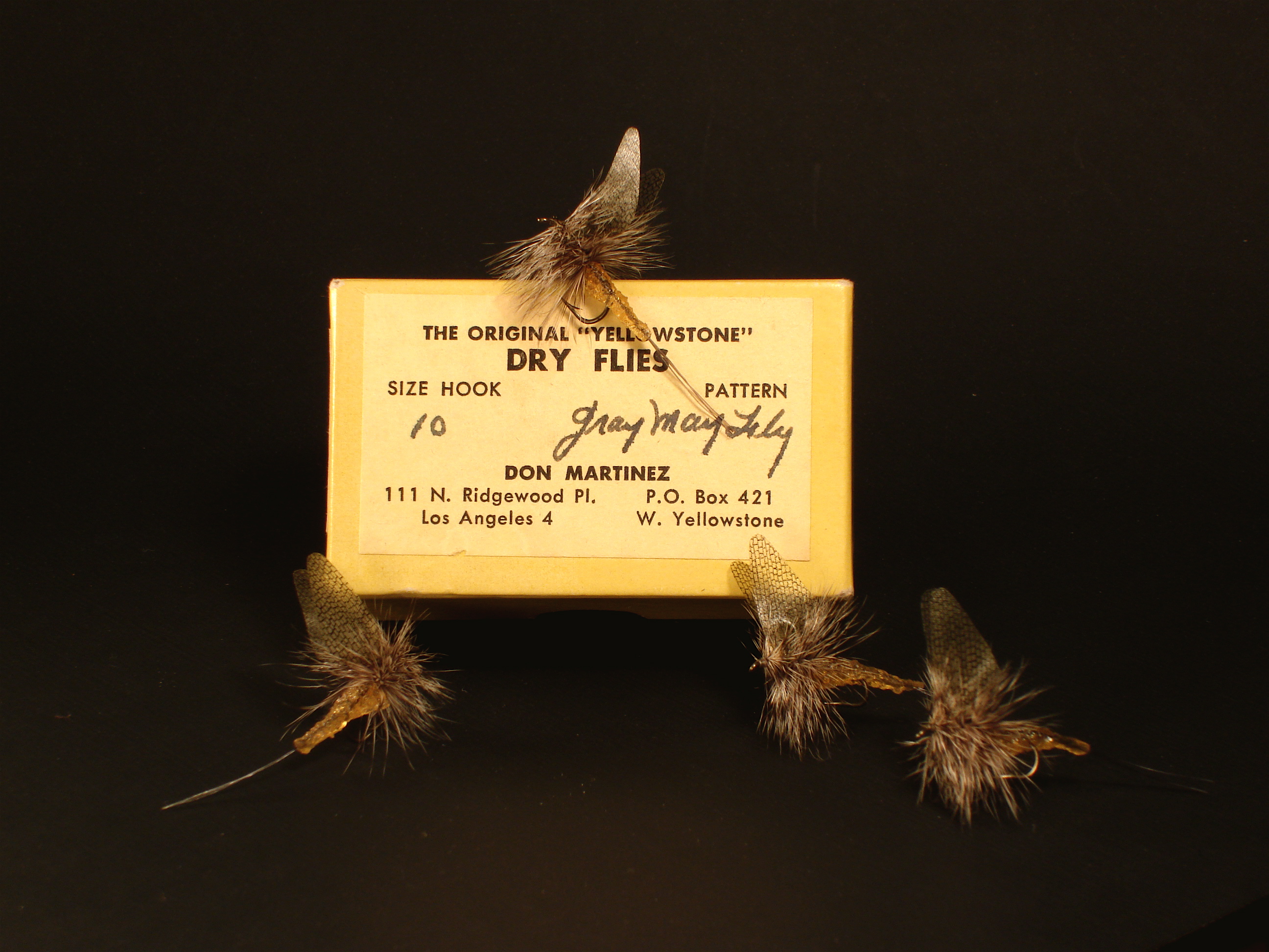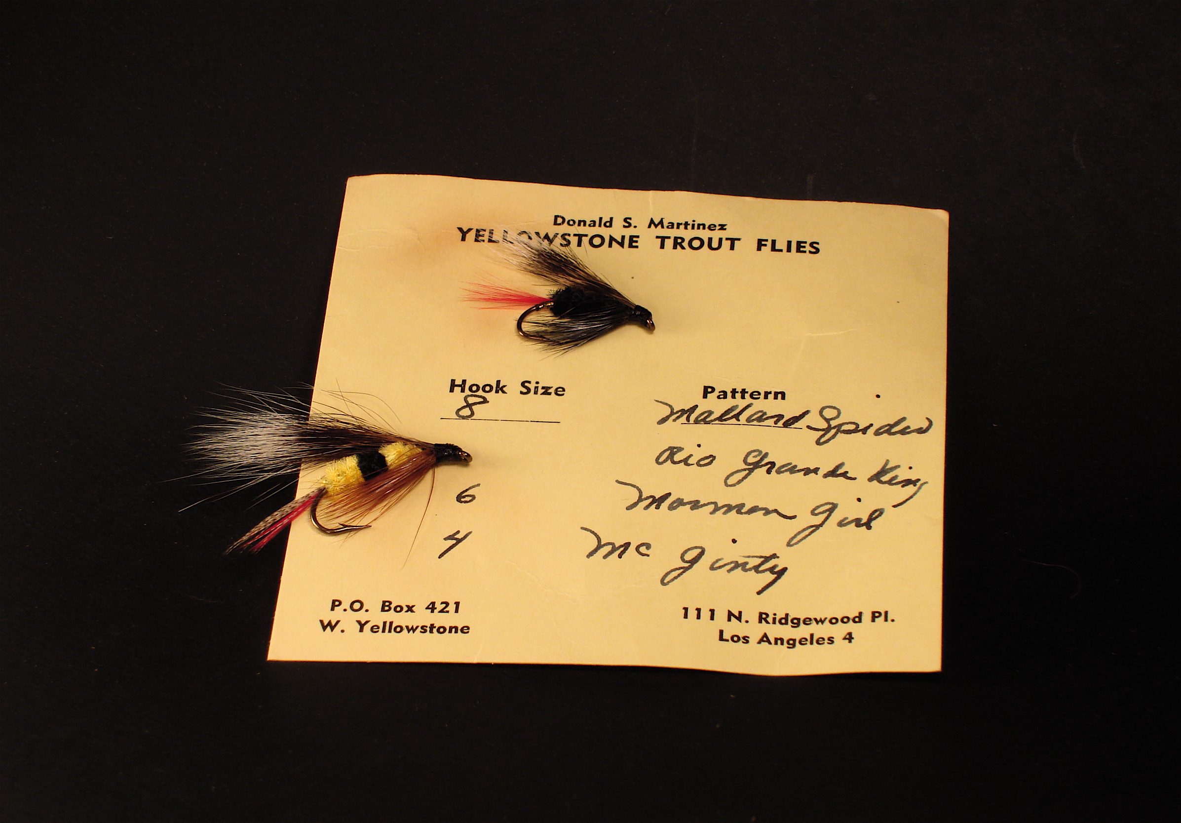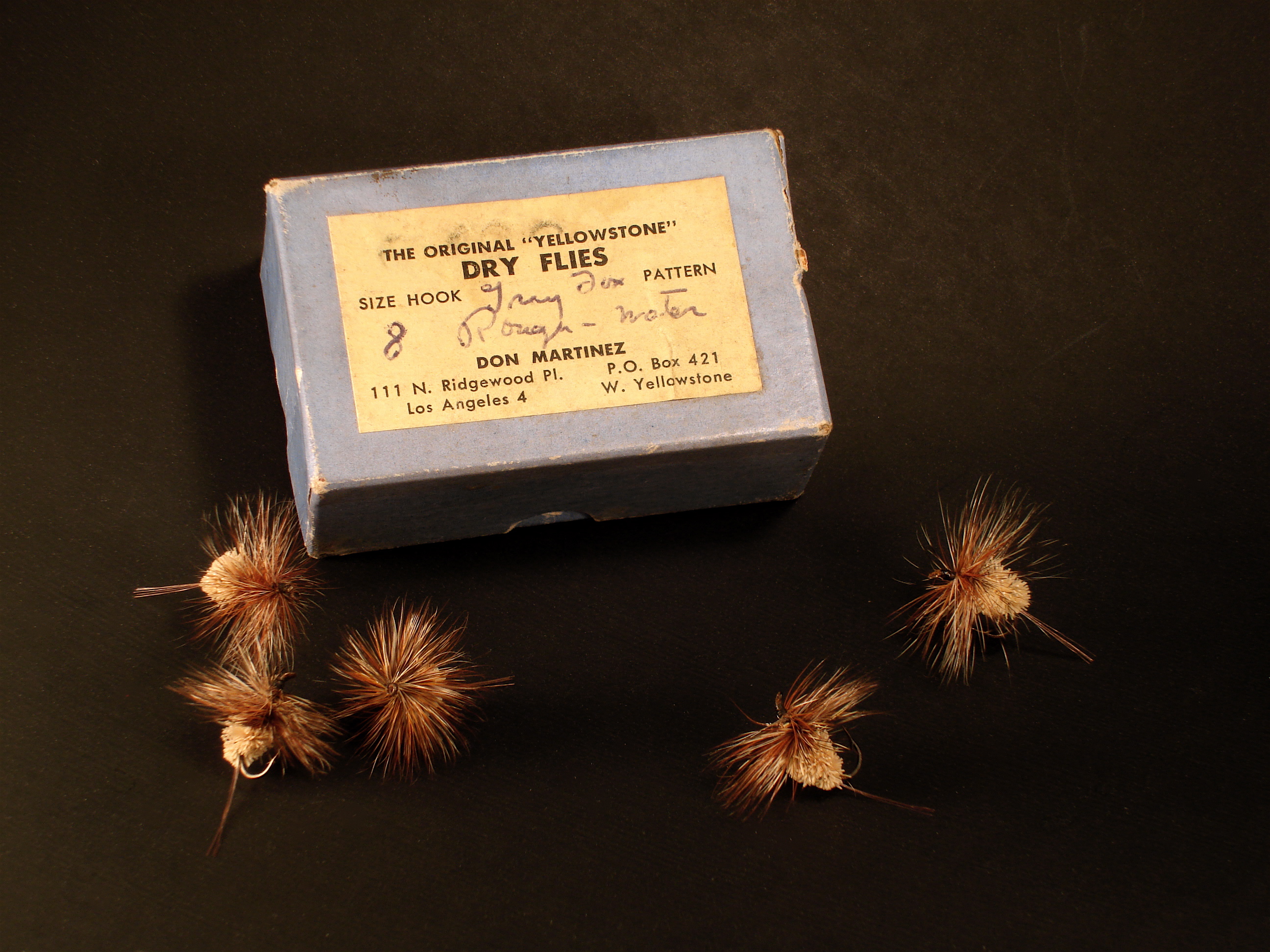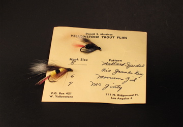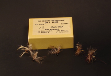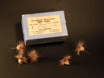 As you will note on his blue and yellow fly boxes below, Martinez lived in Los Angeles during the winter and in the spring he returned to West Yellowstone, Montana to operate this one room fly shop and fish the waters he loved. Martinez flies are some of the most difficult flies to acquire given Don Martinez passed away at an early age in the 1950s.