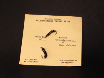 Don Martinez is one of the central historical figures in the evolution of dry fly-fishing in the American West. As well, he is the tyer most closely associated with popularizing one of the most prolific western patterns ever--the Wooly Worm. He is pictured above in his one room fly shop with a customer on his left and the future West Yellowstone fly shop owner Pat Barnes on his right. Pat went on with his wife Sig to also be a major force in shaping western fly-fishing.