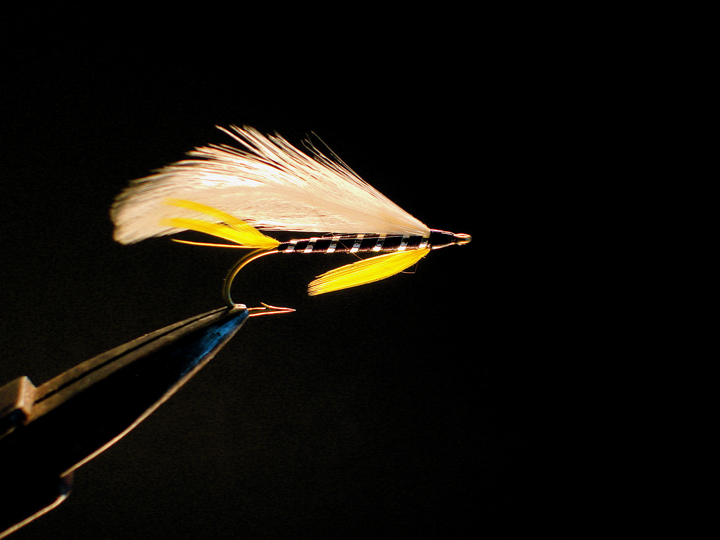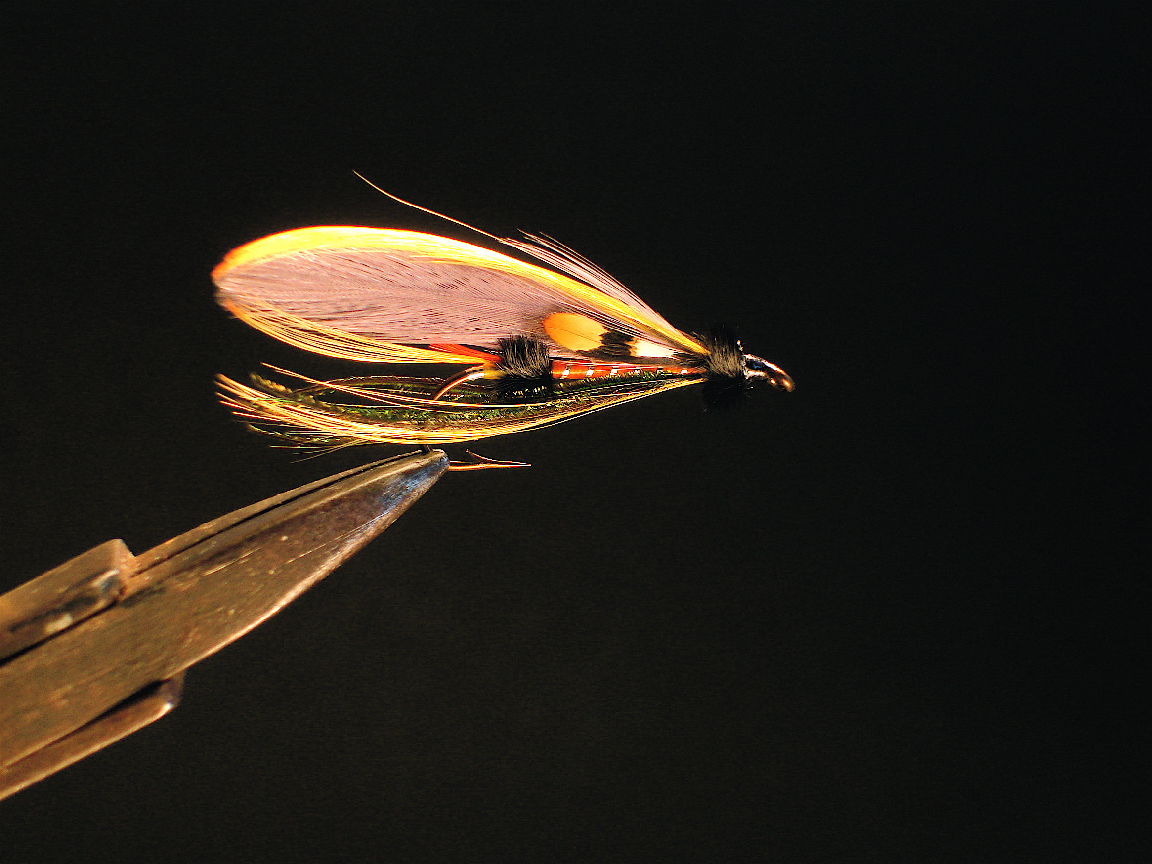 (Above is an original salmon fly pattern tied by Don Labbe--friend of Cal's and fellow California native. Note the "Cal Bird" Style & quality. Don graciously contributed his collection of Cal's flies for this series featured below.)