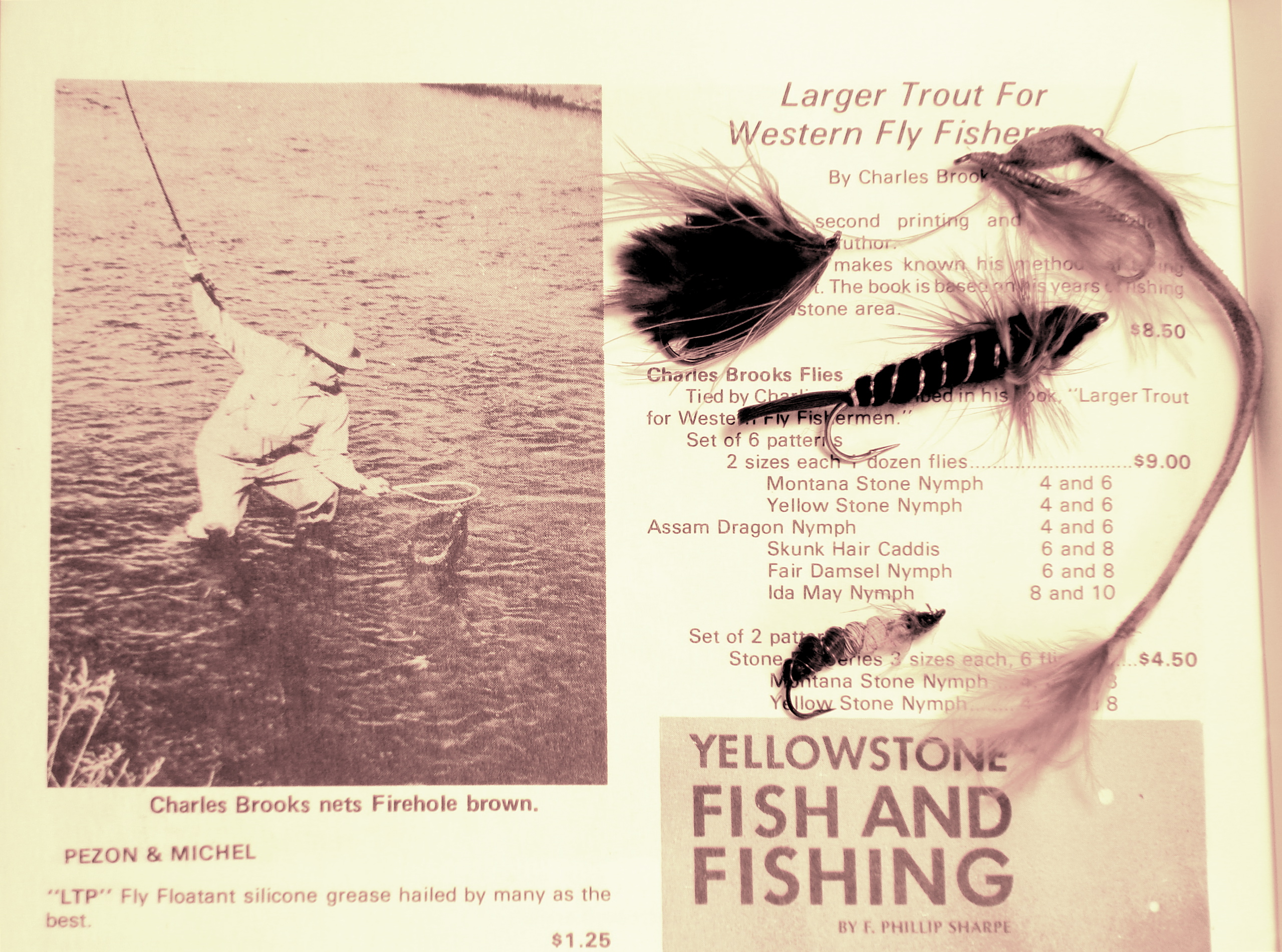 Charles Brooks retired to West Yellowstone, Montana from the U.S. Air Force and purchased land in 1961. He lived in the vicinity of Reynold's Pass on the Montana, Idaho border where he devoted his time to fishing, fly tying and the instruction of fly-fishing in all of it's varied forms. However, unlike most retired fisherman, Charles became a dedicated teacher of his sport and an avid student of fly-fishing, going to remarkable lengths to study the habits and ecosystem of western trout. During his lifetime he wrote numerous books featuring the Madison, Henry's Fork and Yellowstone Park rivers. He was also in the forefront of education on fly-fishing for "Larger Trout on Western Waters" using the flies highlighted below. He remains to this day one of the great characters of western fly fishing.