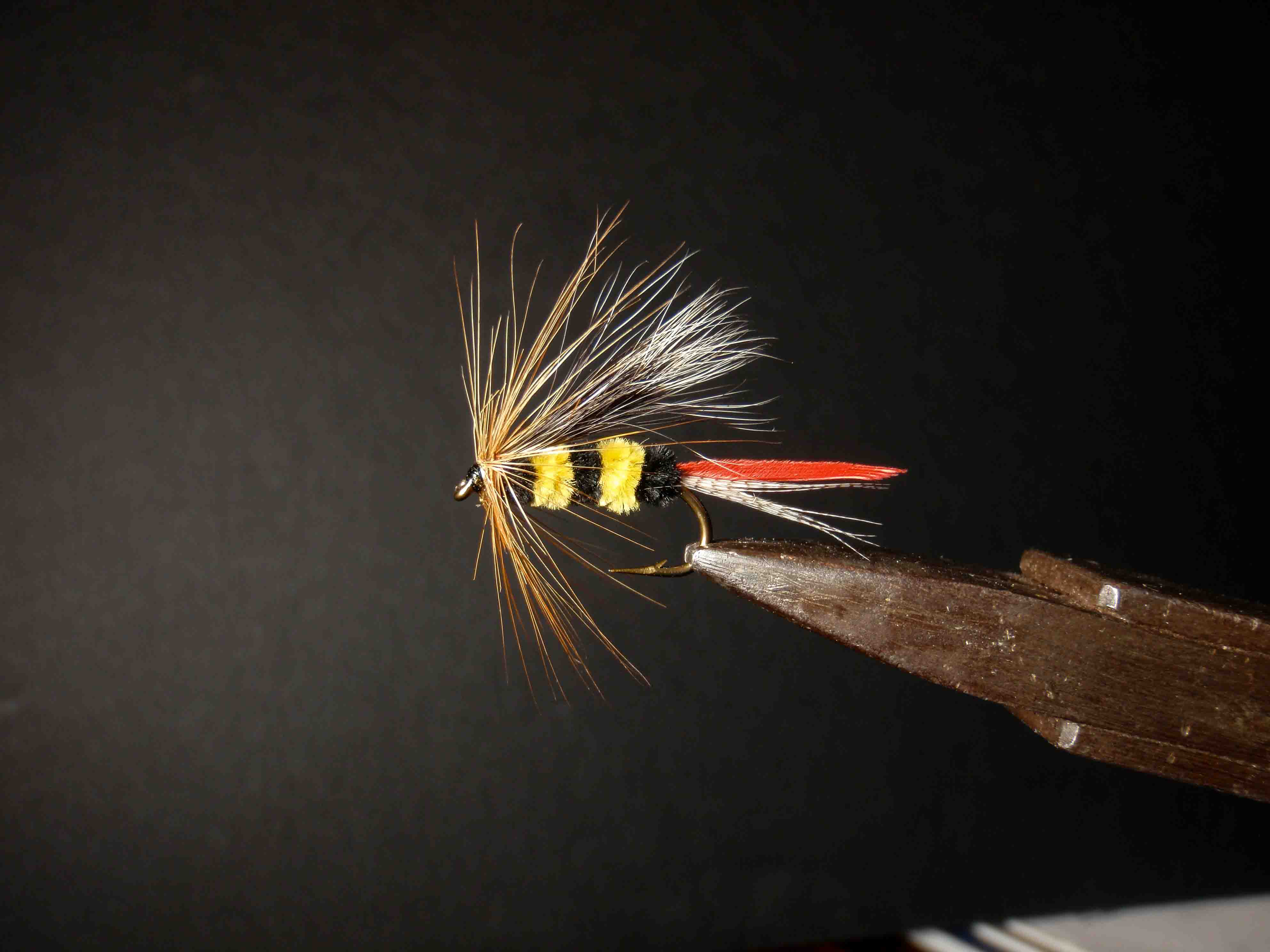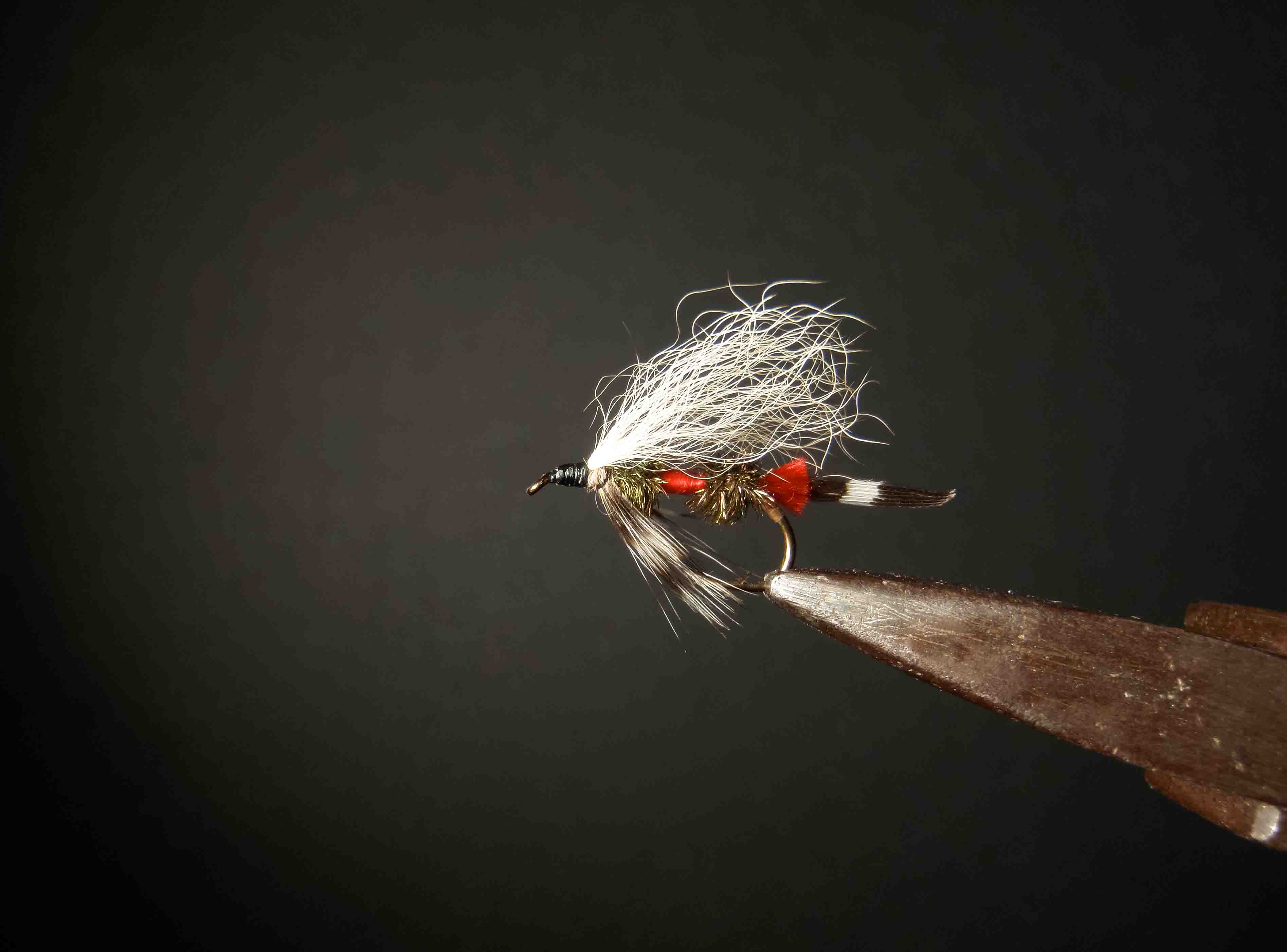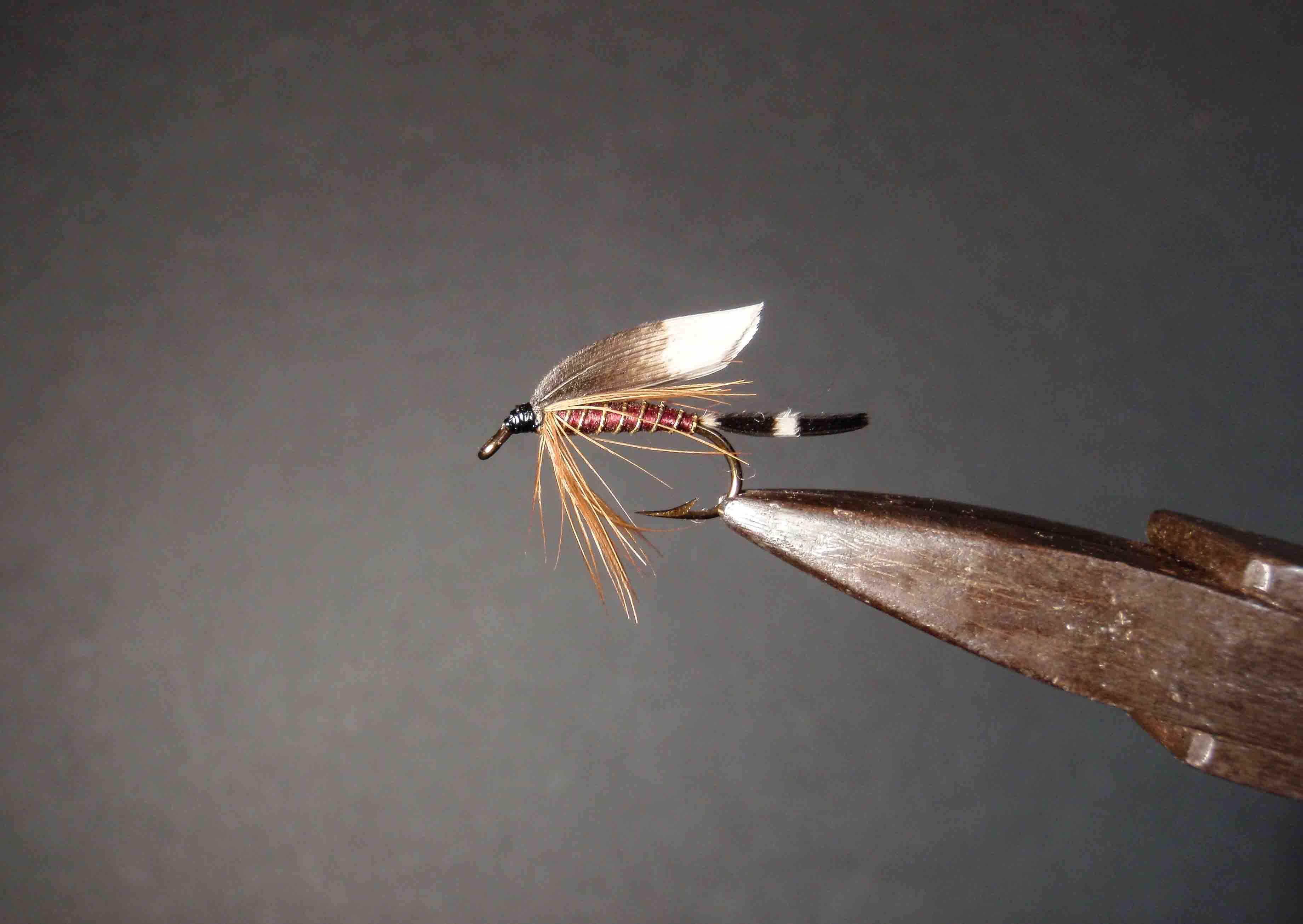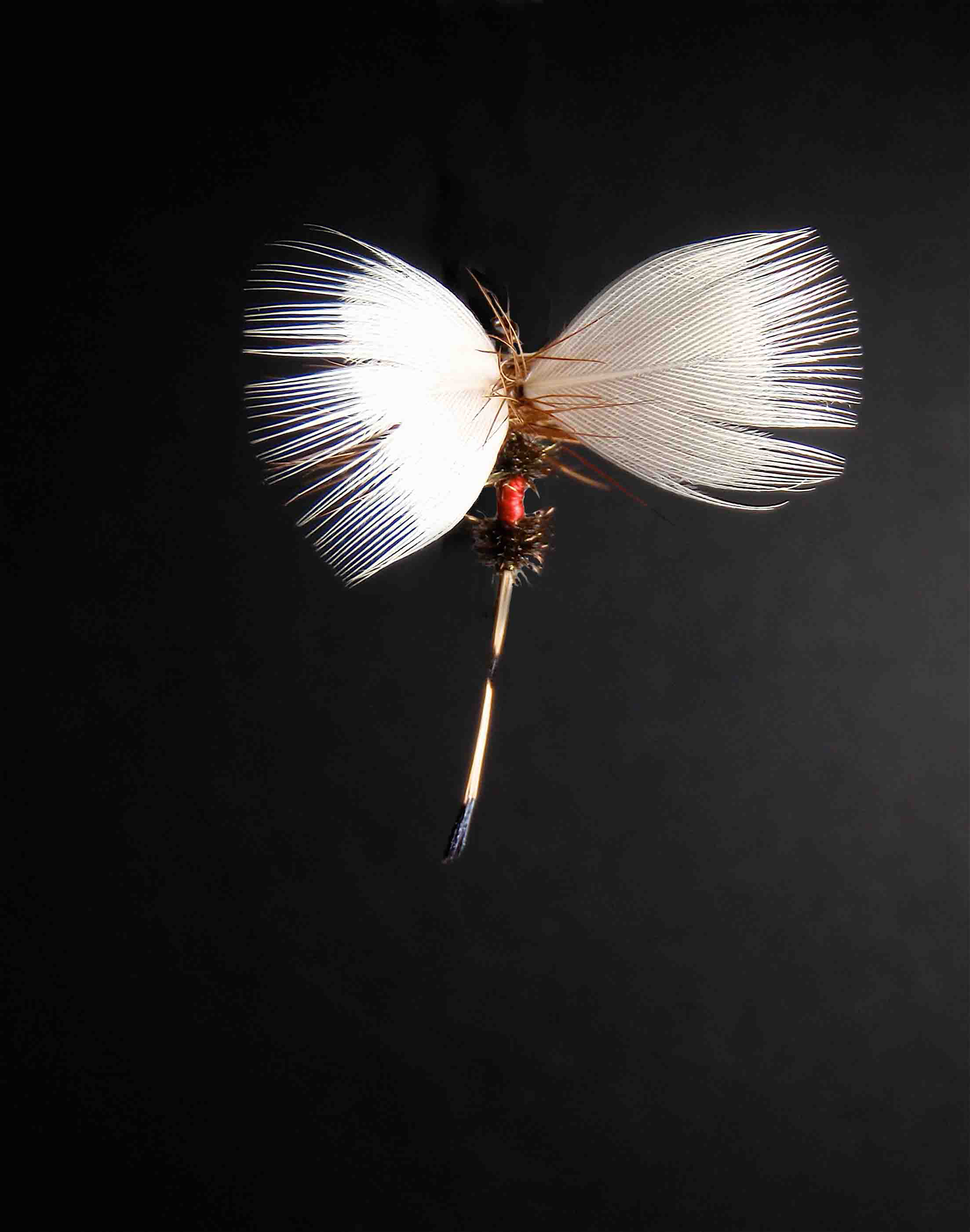"The number 40 Royal Coachman is dressed as Ray Bergman lists it in "trout", and was tied the year after his book was published...Too tiny to have an eye, the #40 hook was fastened