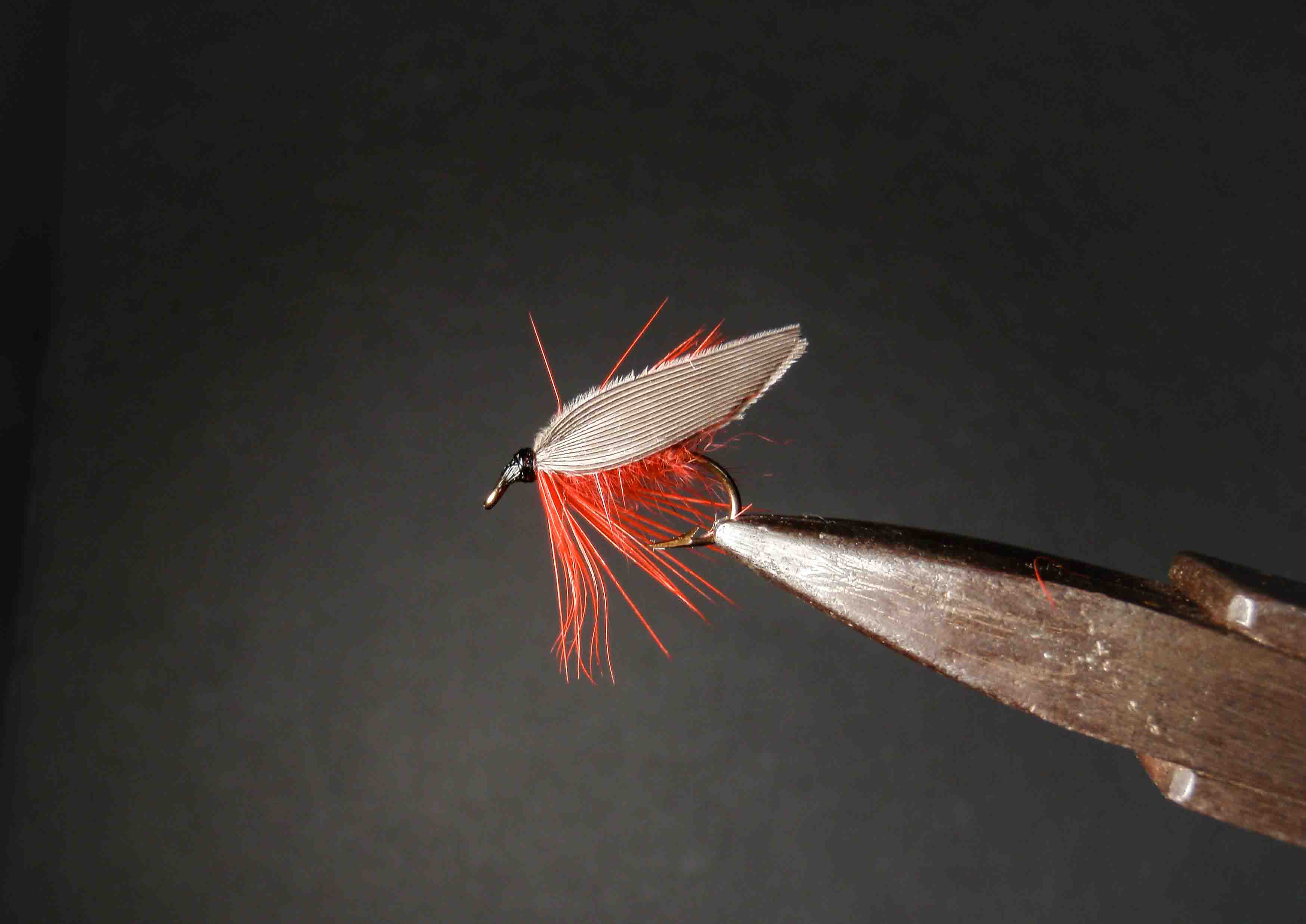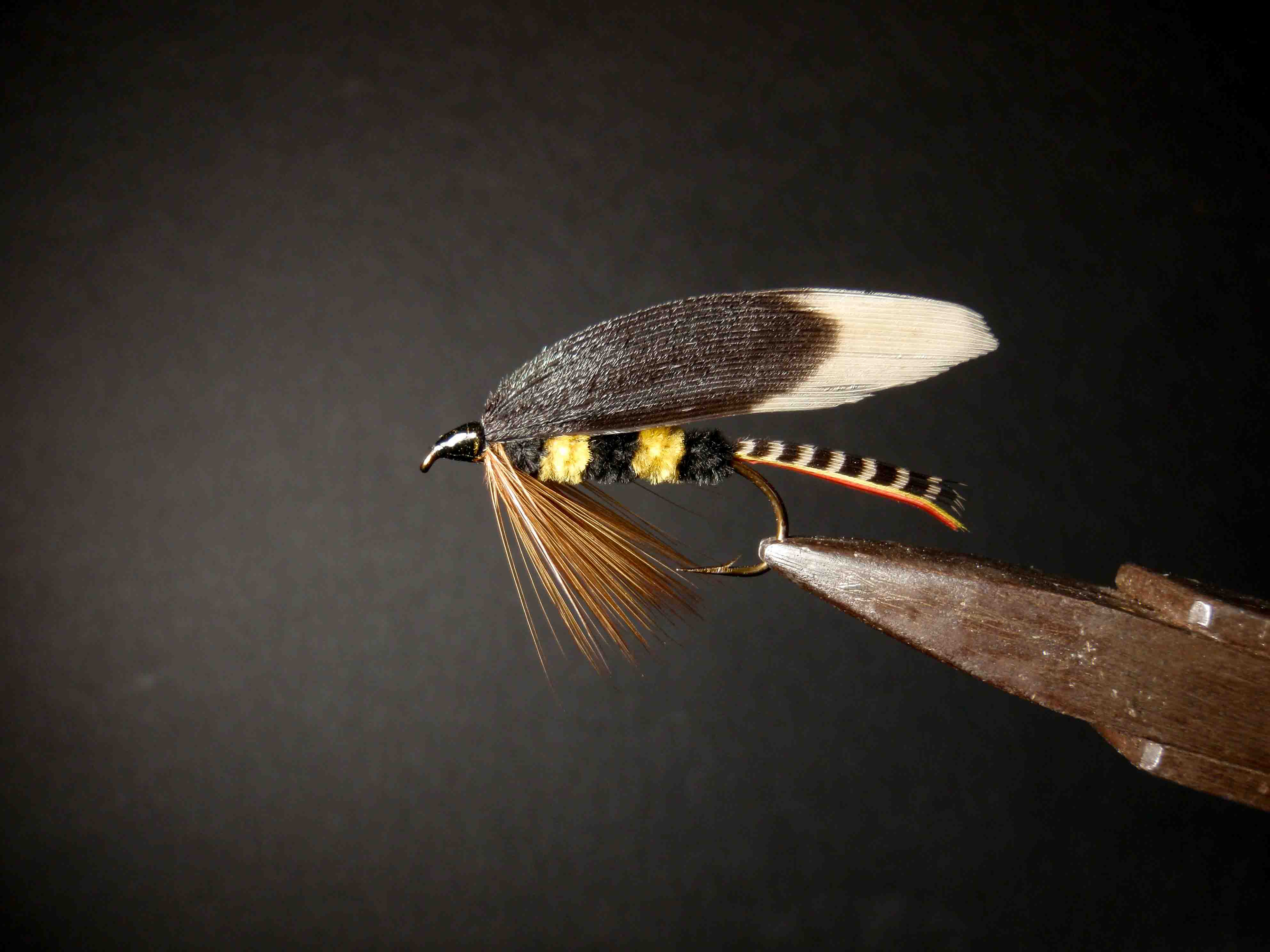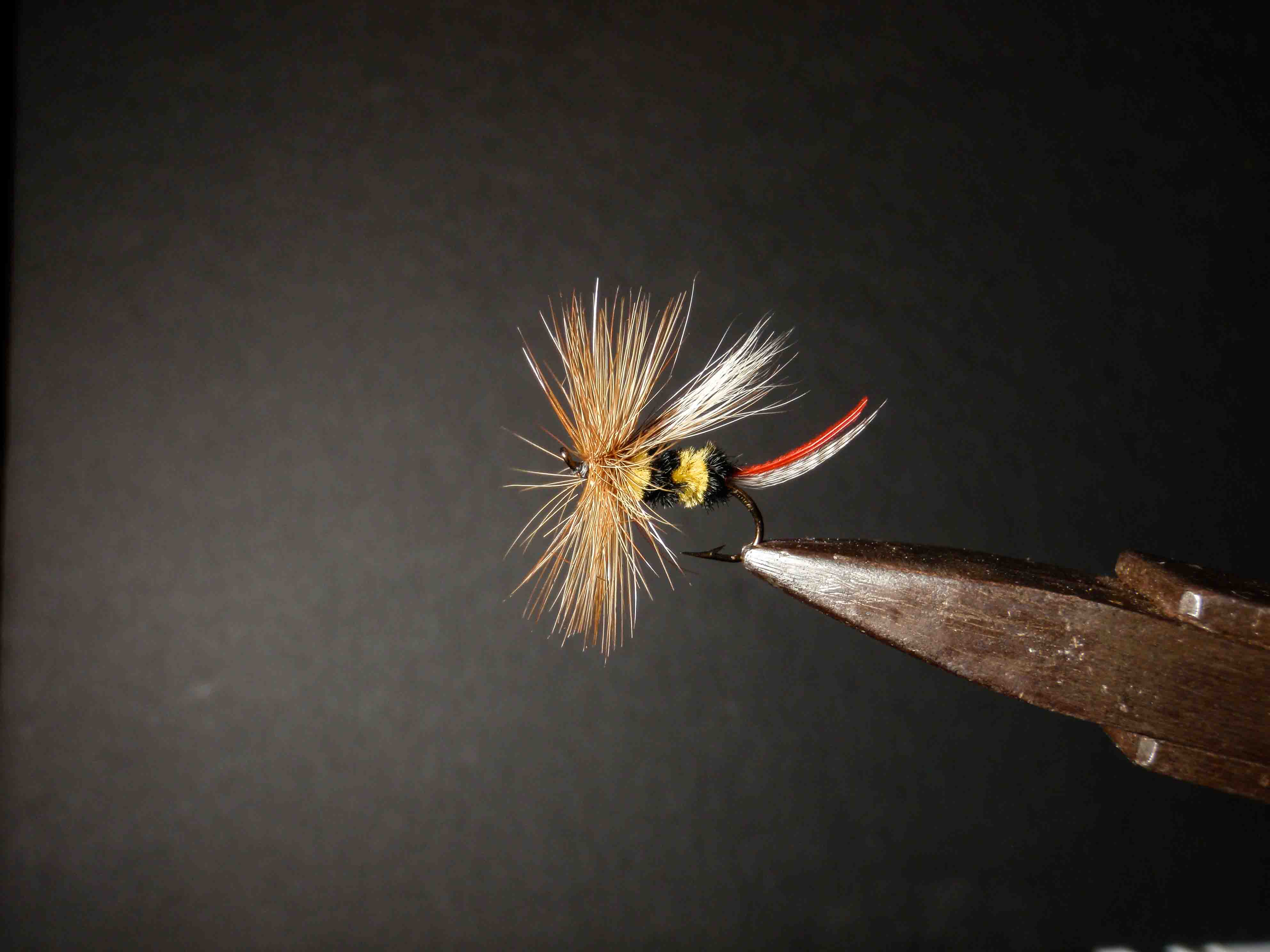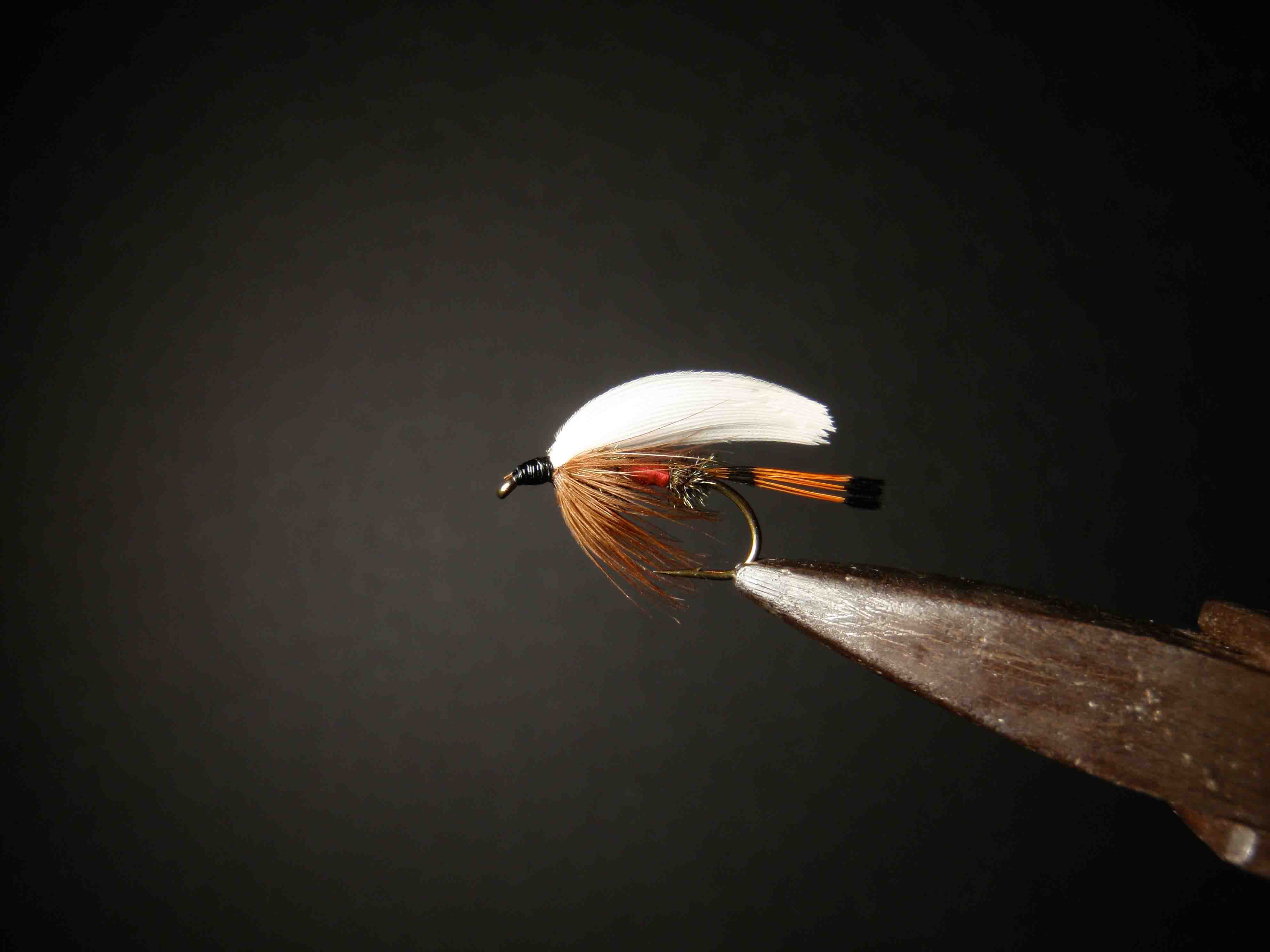 "The number 40 Royal Coachman is dressed as Ray Bergman lists it in "trout", and was tied the year after his book was published...Too tiny to have an eye, the #40 hook was fastened