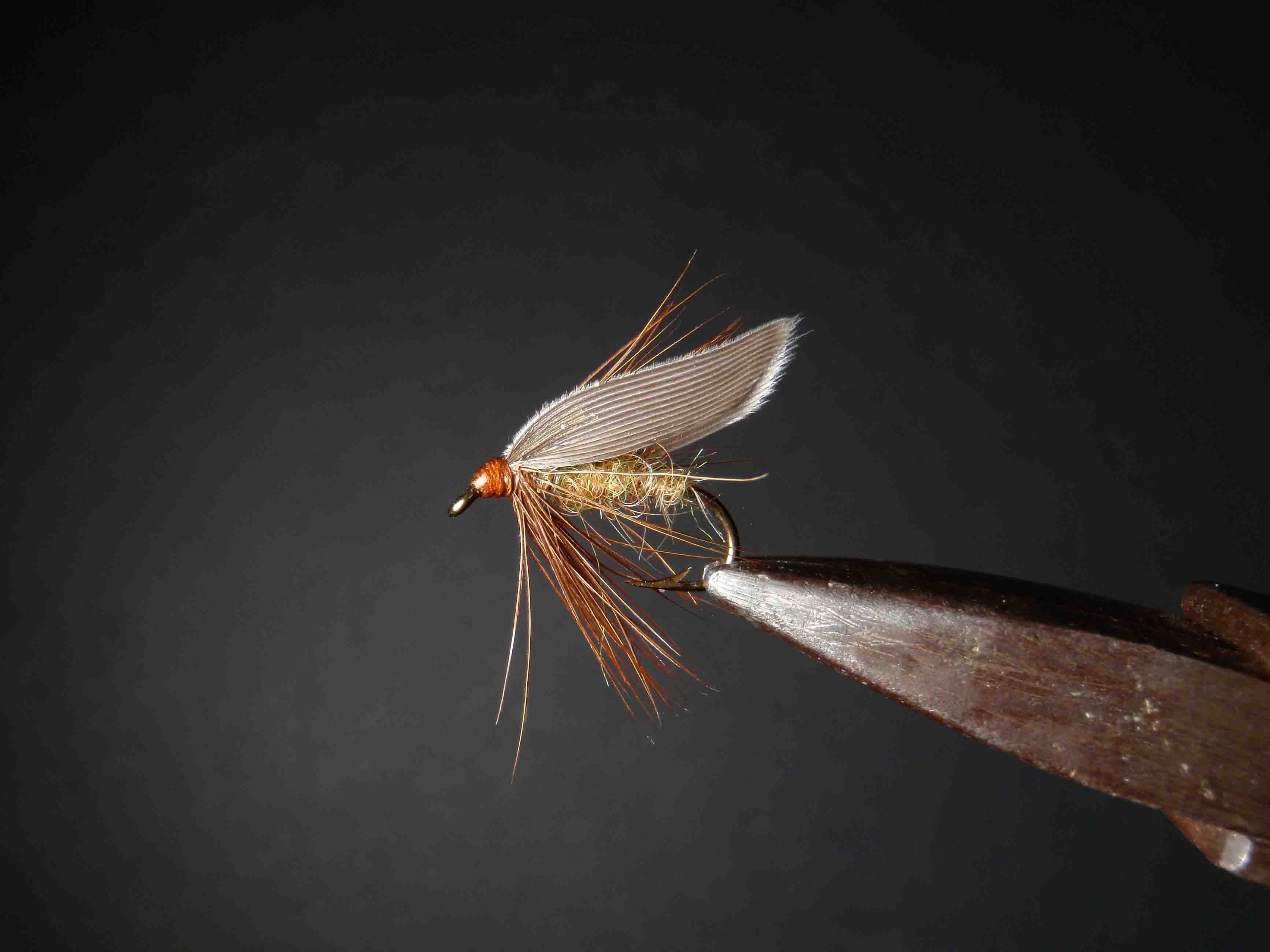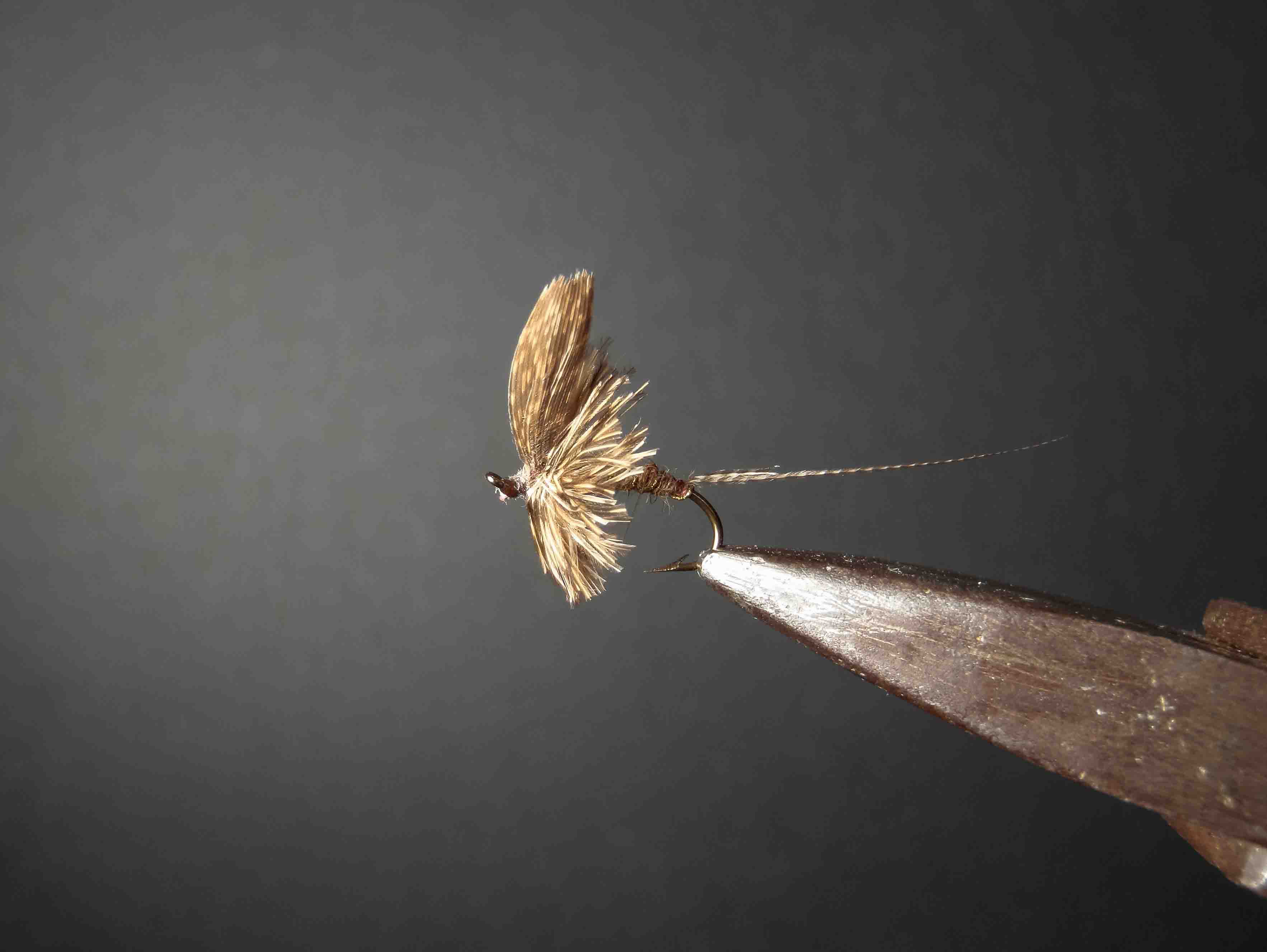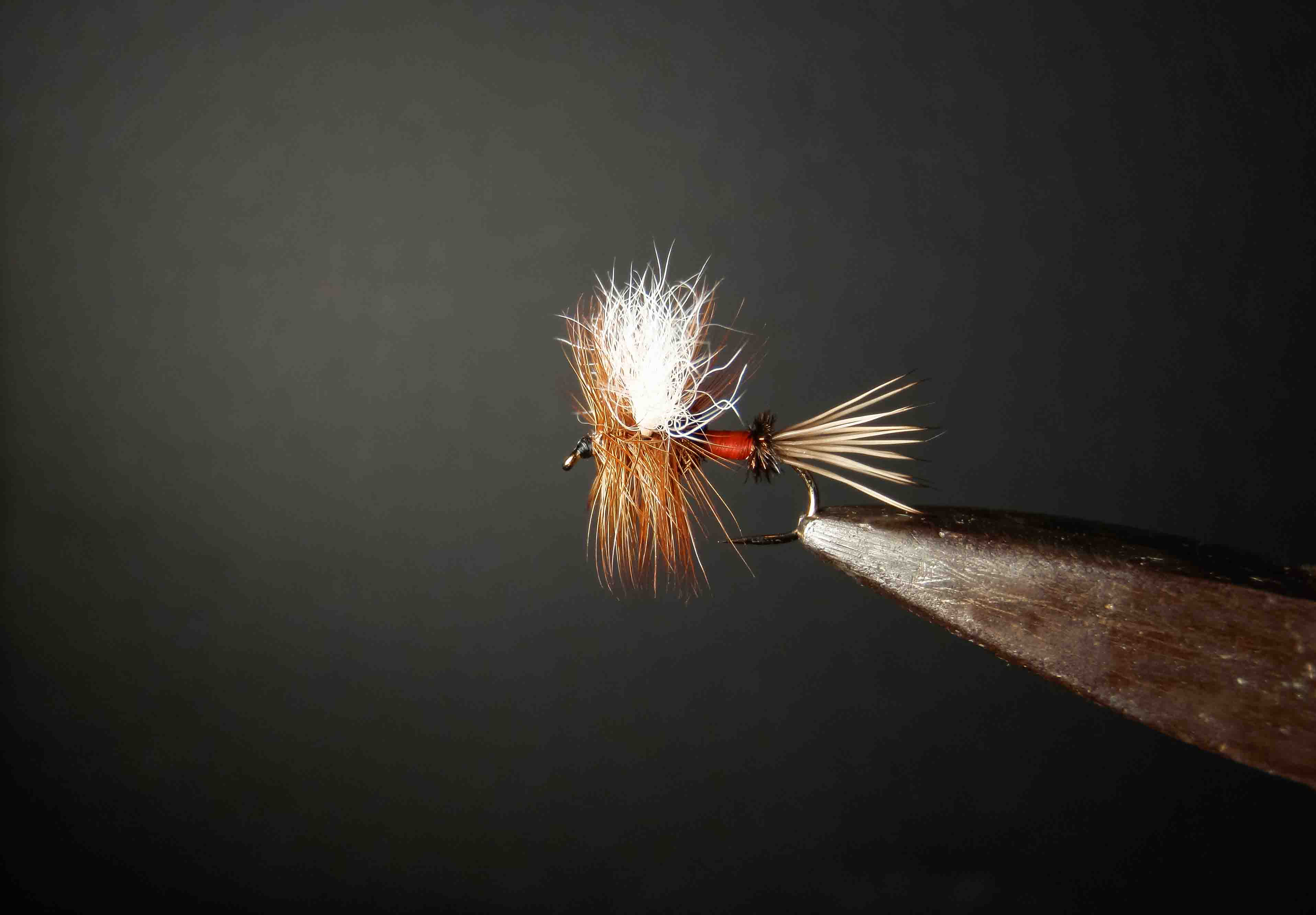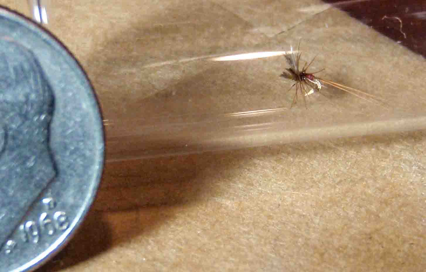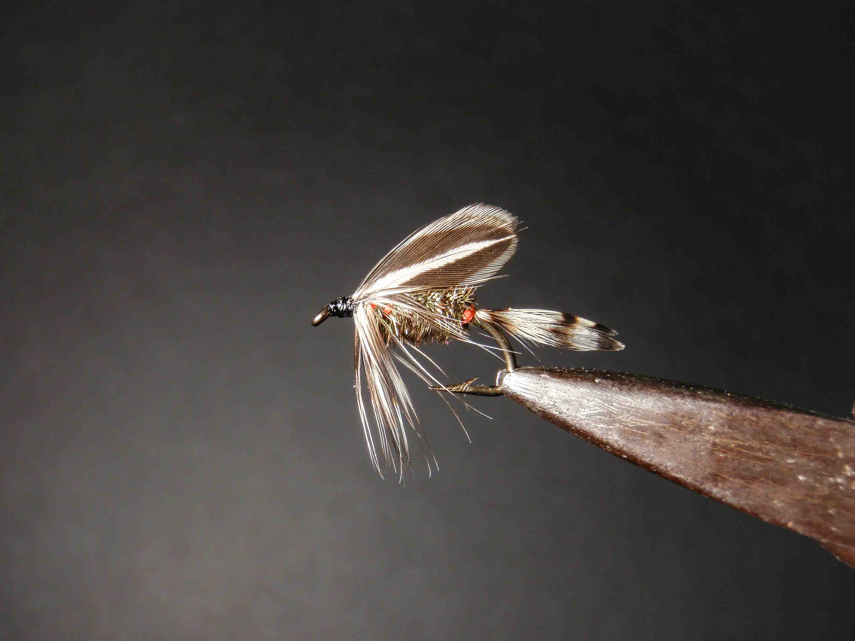 "The number 40 Royal Coachman is dressed as Ray Bergman lists it in "trout", and was tied the year after his book was published...Too tiny to have an eye, the #40 hook was fastened