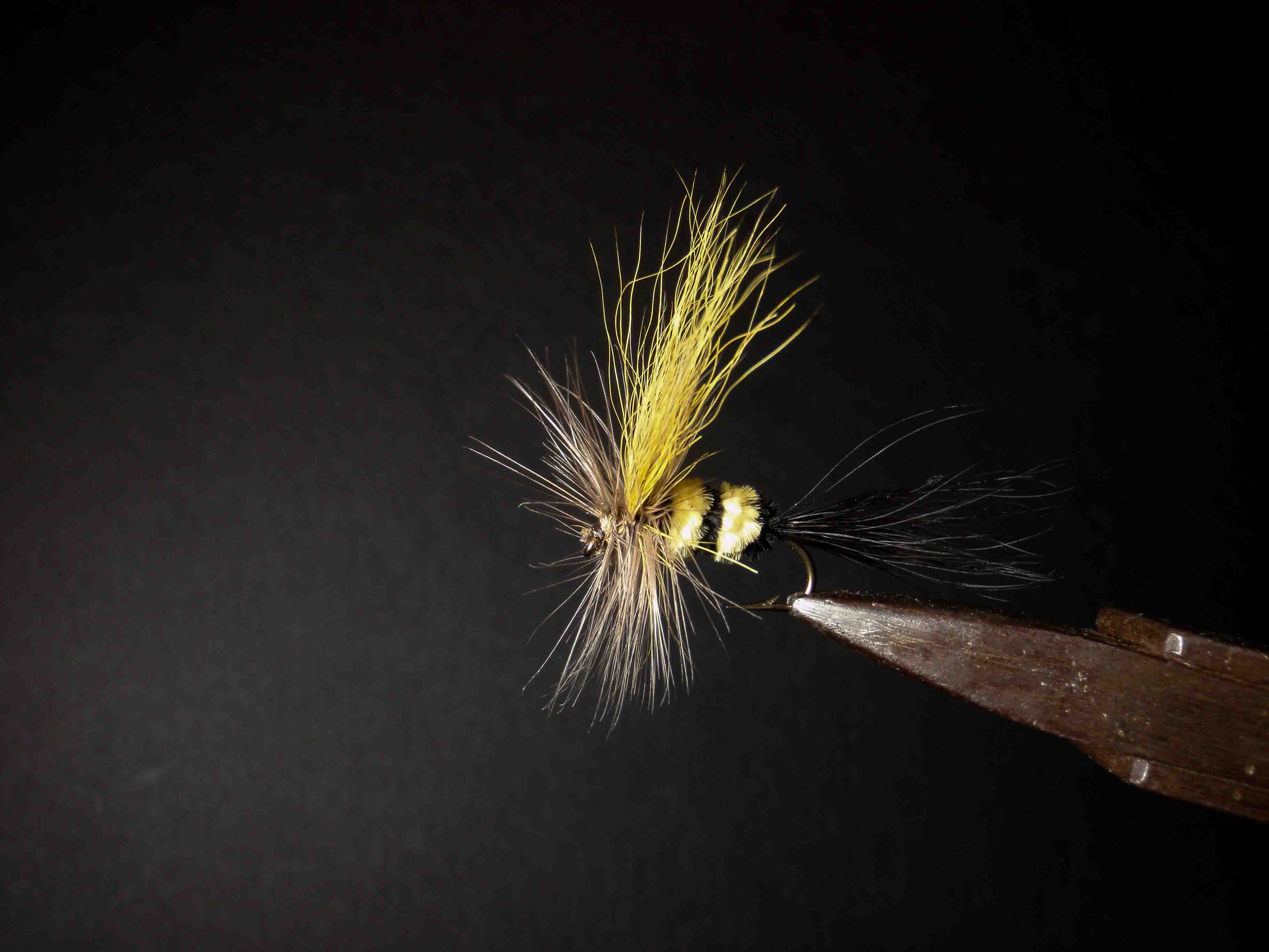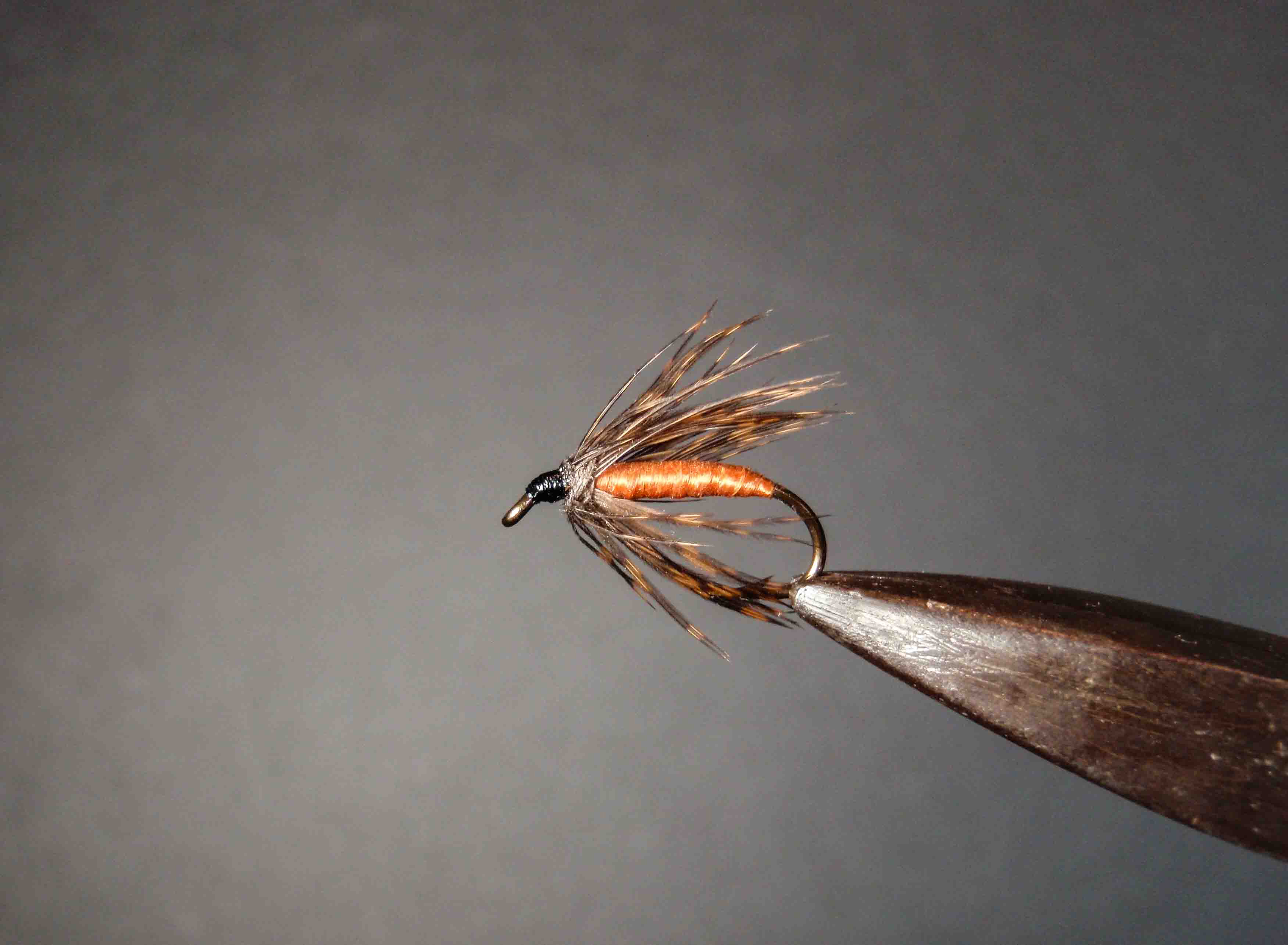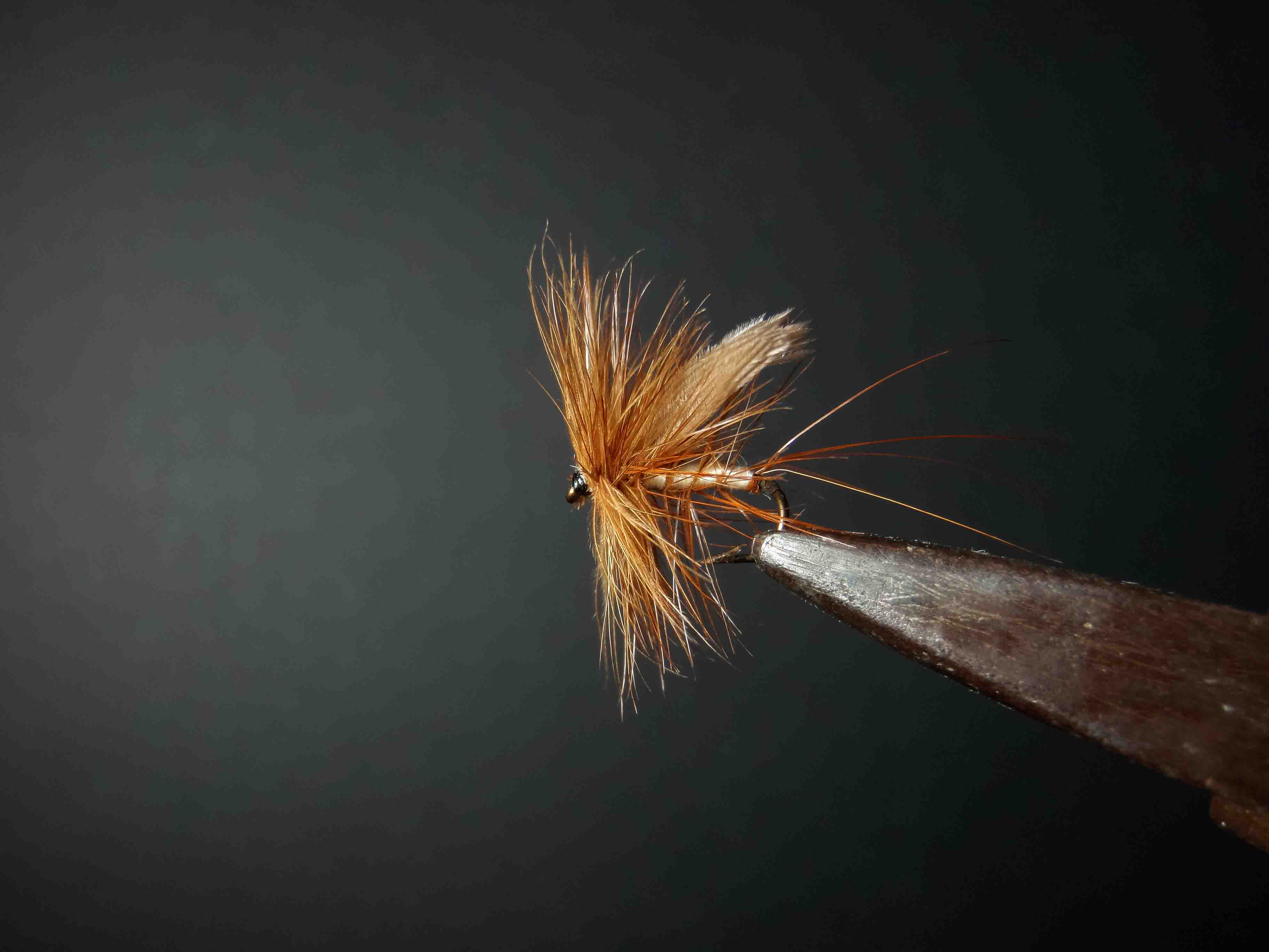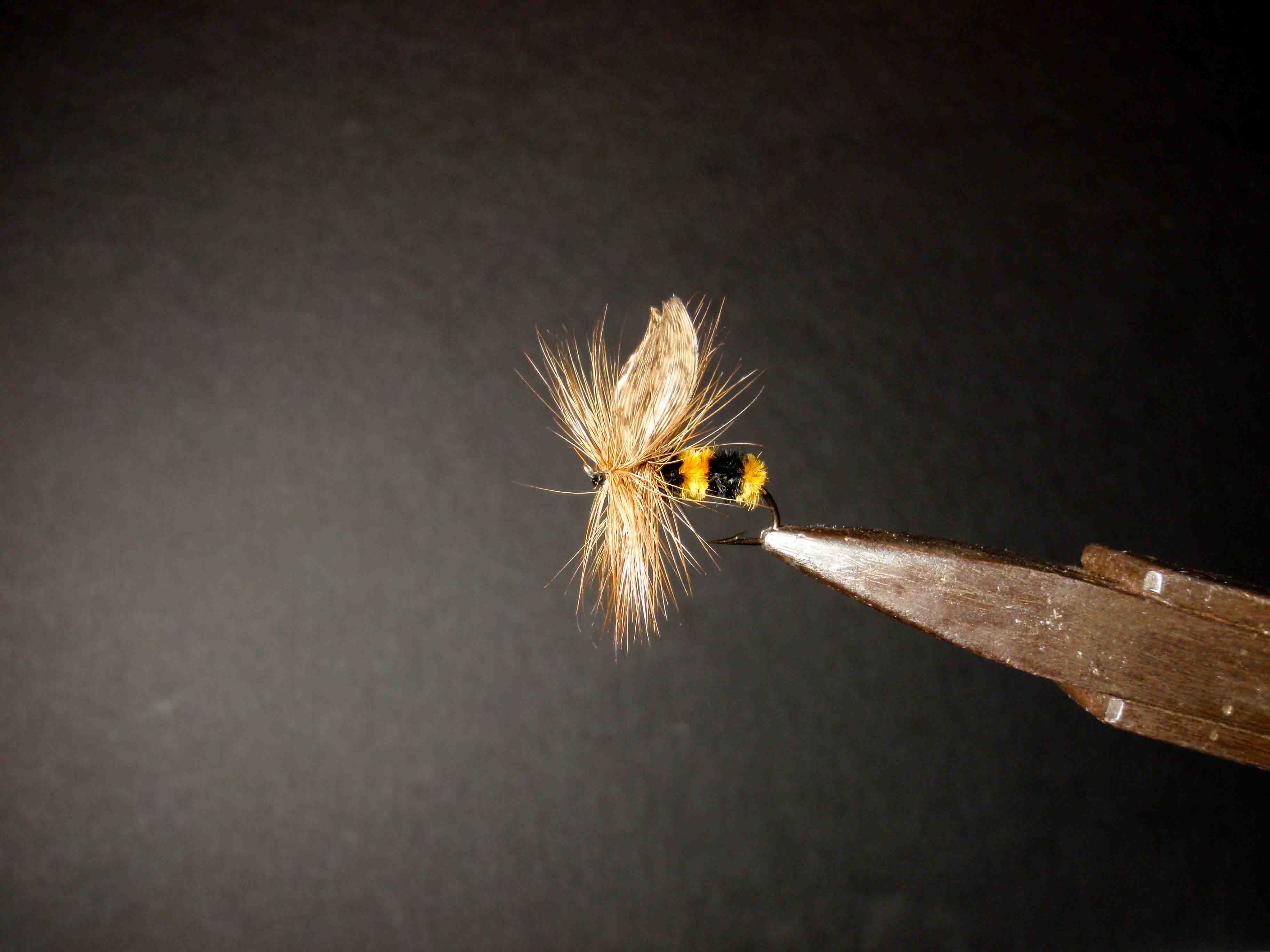 "The number 40 Royal Coachman is dressed as Ray Bergman lists it in "trout", and was tied the year after his book was published...Too tiny to have an eye, the #40 hook was fastened