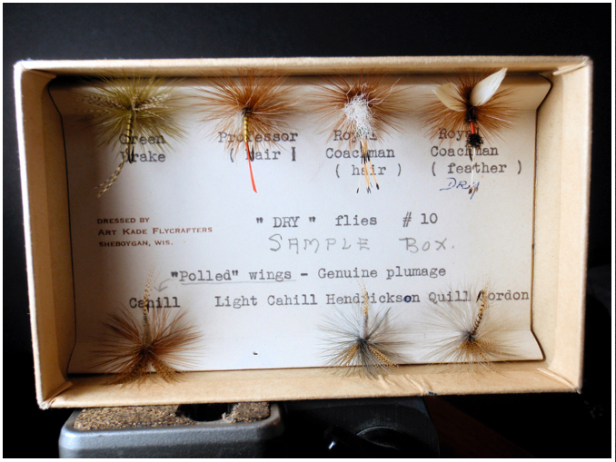 Believed to be the earliest commercial Helen Shaw flies in this box of Art Kade Flycrafters dry flies.