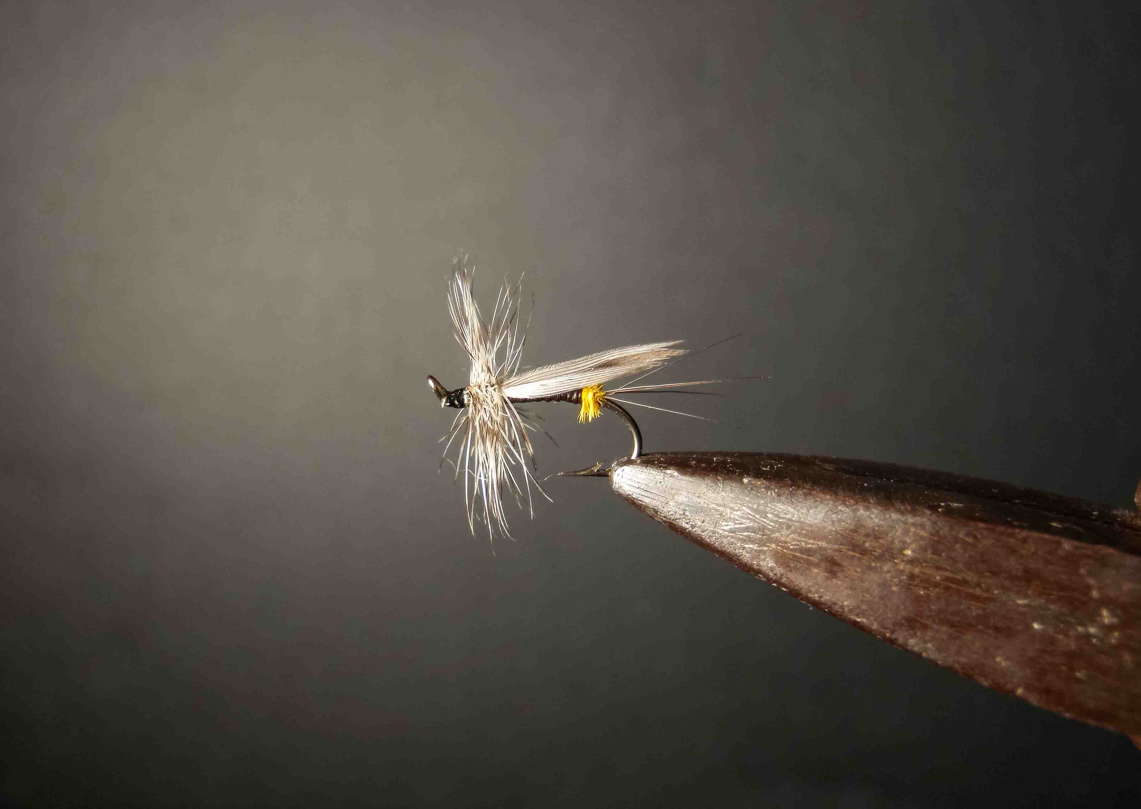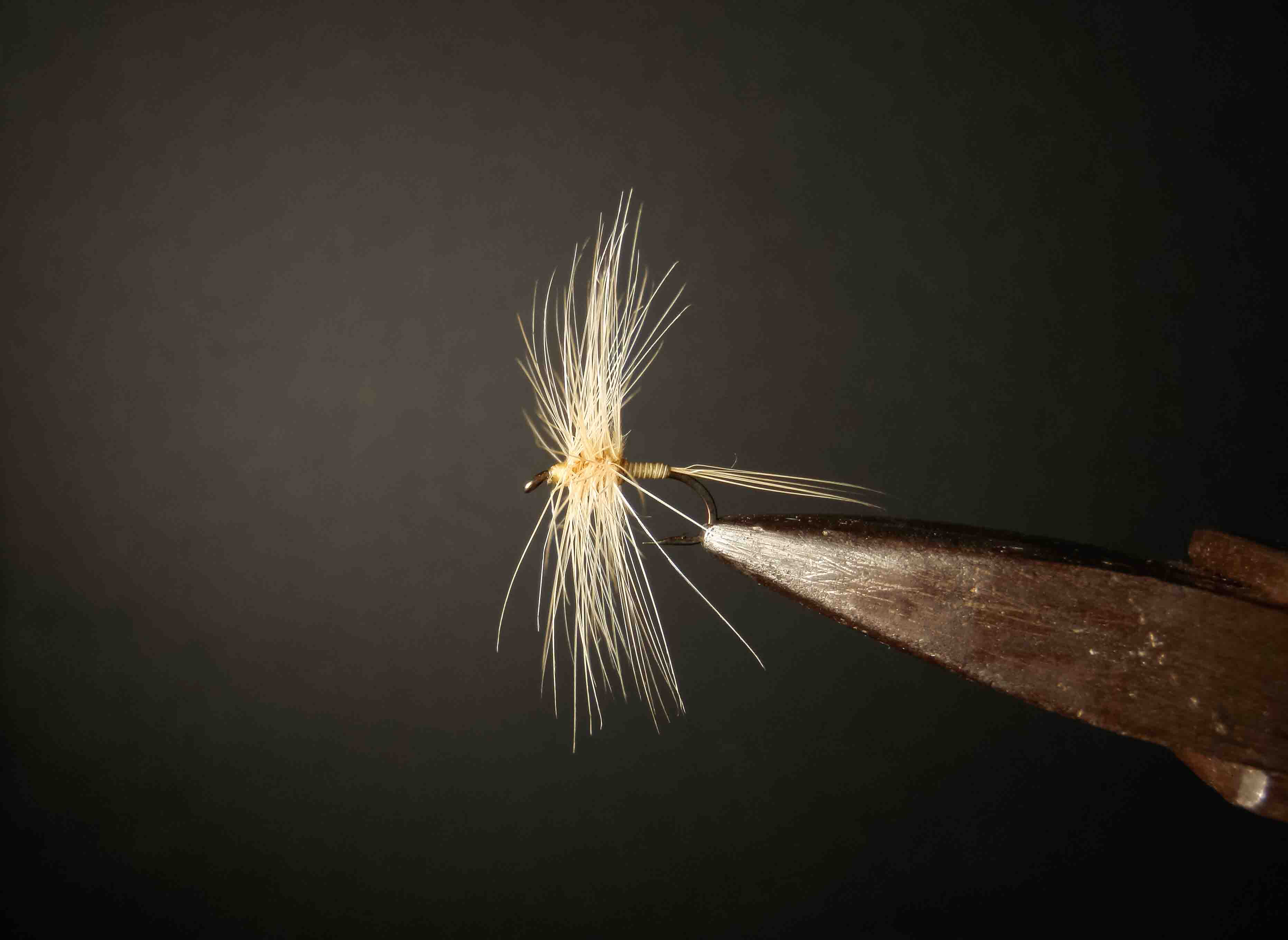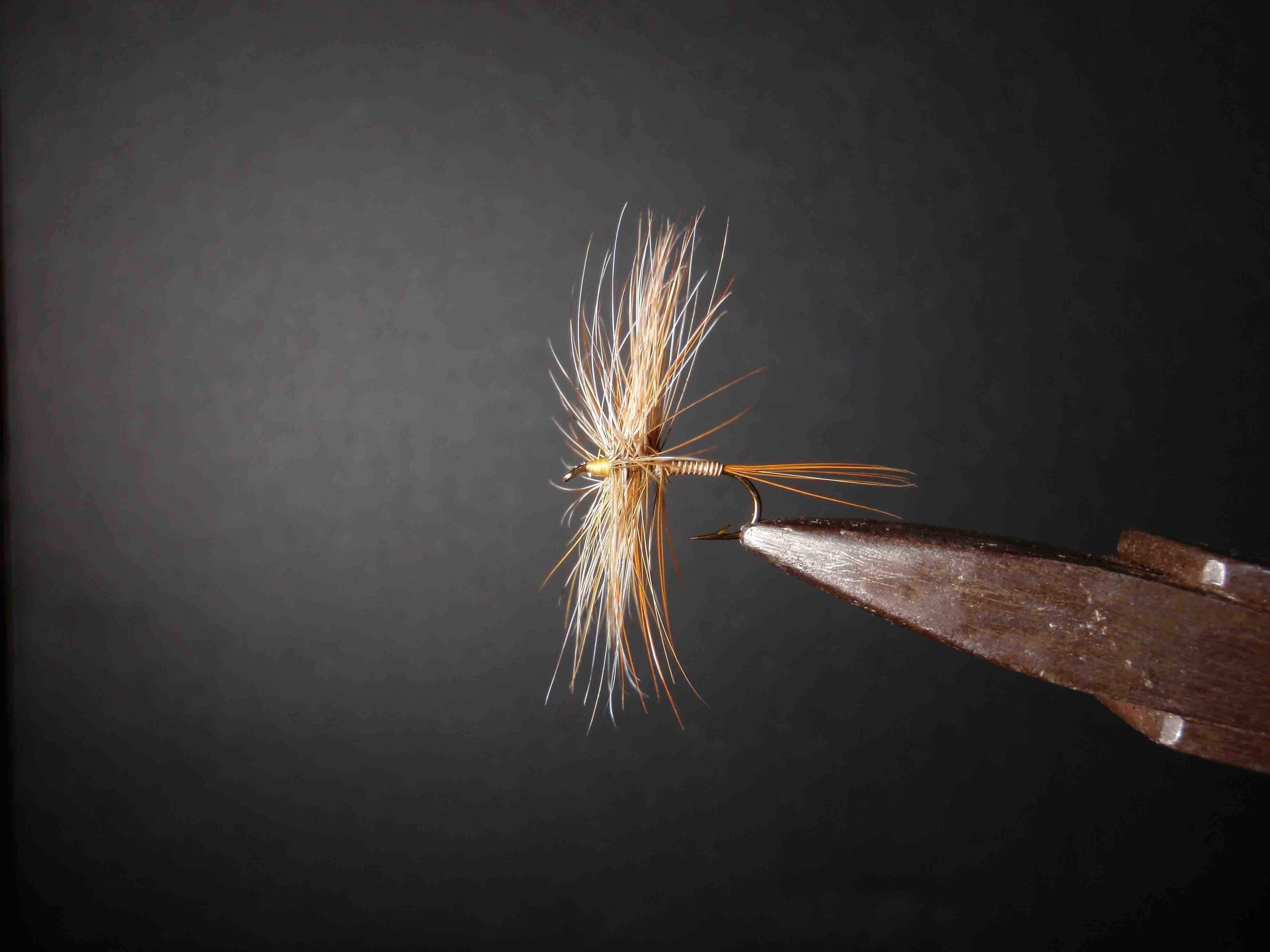to a strand of gold wire thread...to permit handling it later. This fly was tied at the International Outdoor Show in Chicago in 1939, and at the time was one of three such hooks in the world,