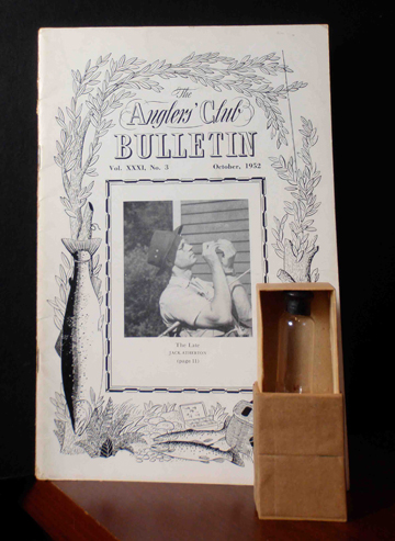 Above: The size #40 fly on the end of a cigarette to highlight the diminutive size. Right: Articles ran in Field and Stream as well as the New York Anglers Club bulletin among others highlighting Helen's showcase fly.